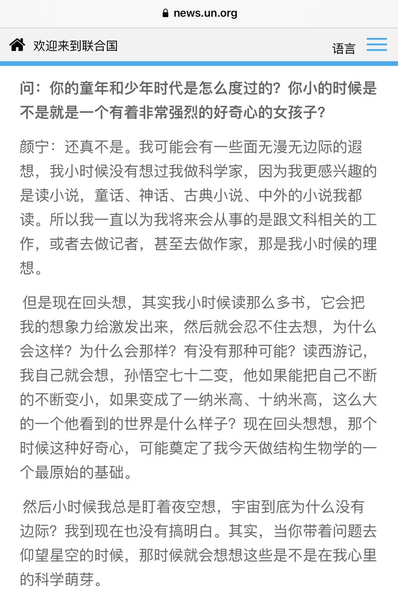 方舟子@fangshimin·Feb 25颜宁说,她小时候看《西游记》,就已经有了纳米级结构的概念,为今天做结构生物学奠定了基础。果然是纳米级的伟大的天才的科学家,不服不行。https://pbs.twimg.com/media/EvG4EjPVIAAAmOJ?format=jpg&name=medium