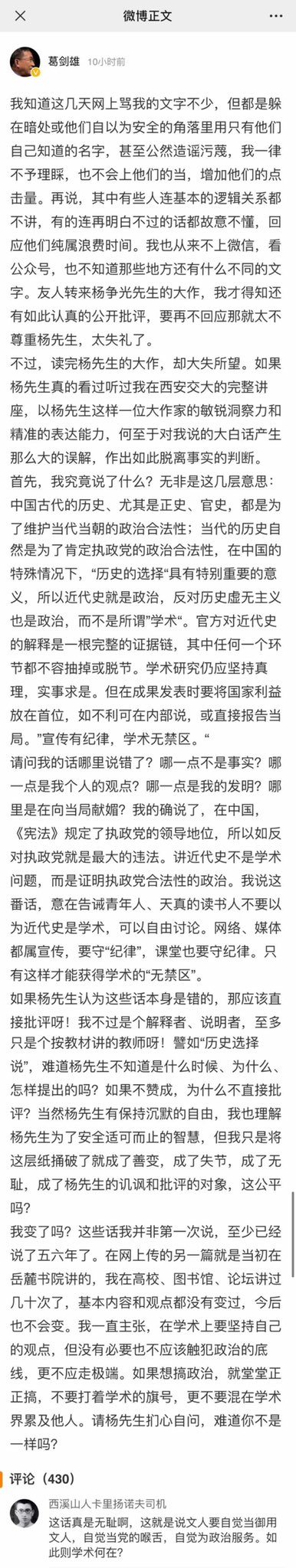 方舟子@fangshimin·Jun 12葛剑雄现在到处做演讲宣扬历史就是要维护现政权的合法性,自己当奴才,却要引经据典证明历史就应该是政治的奴仆。中国传统史学固然有春秋笔法的阴影,也有“在齐太史简”的秉笔直书的骨气,葛剑雄就敢无视?何况作为现代学者,还把孔子当不能违背的圣人啊?https://twitter.com/i/status/1403613388790325252
