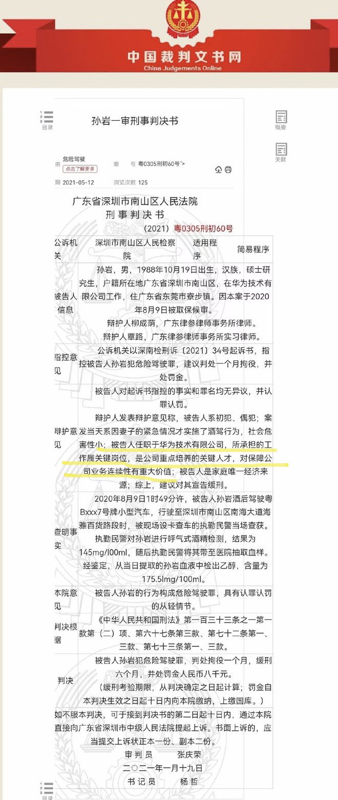方舟子@fangshimin·Jun 16在华为工作也是轻判的因素,为了不影响华为爱国业务,华为员工犯罪都判缓刑。https://pbs.twimg.com/media/E4Dh6mdVIAcQ3V7?format=jpg&name=large