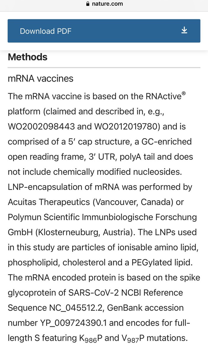 方舟子@fangshimin·Jun 17看了一下论文,CureVac信使RNA疫苗有加帽,但是没有用修饰核苷酸,号称纯天然核苷酸。其实用修饰核苷酸(主要是假尿嘧啶核苷)是模拟体内后转录修饰,增加稳定性,避免被先天免疫清除。看来不修饰不行。中国自己研发的信使RNA疫苗不知用不用修饰核苷酸,那个原料中国自己生产不了,貌似连山寨版的也没有https://pbs.twimg.com/media/E4HCMxmUYAMb4E8?format=jpg&name=medium