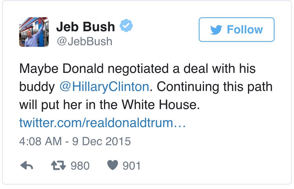 方舟子 ?@fangshimin Dec 11 川普提议禁止穆斯林进入美国的言论几乎激怒了大部分美国人,除了新纳粹和佩林,没什么人支持,杰布.布什怀疑川普是不是民主党的卧底。https://pbs.twimg.com/media/CV8KBFoUwAAZYuw.jpg