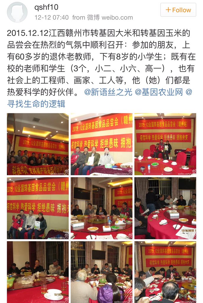 方舟子 ?@fangshimin Dec 12 赣州以前也举办过转基因品尝会吧。https://pbs.twimg.com/media/CWFoi9IUYAAjy8Z.jpg