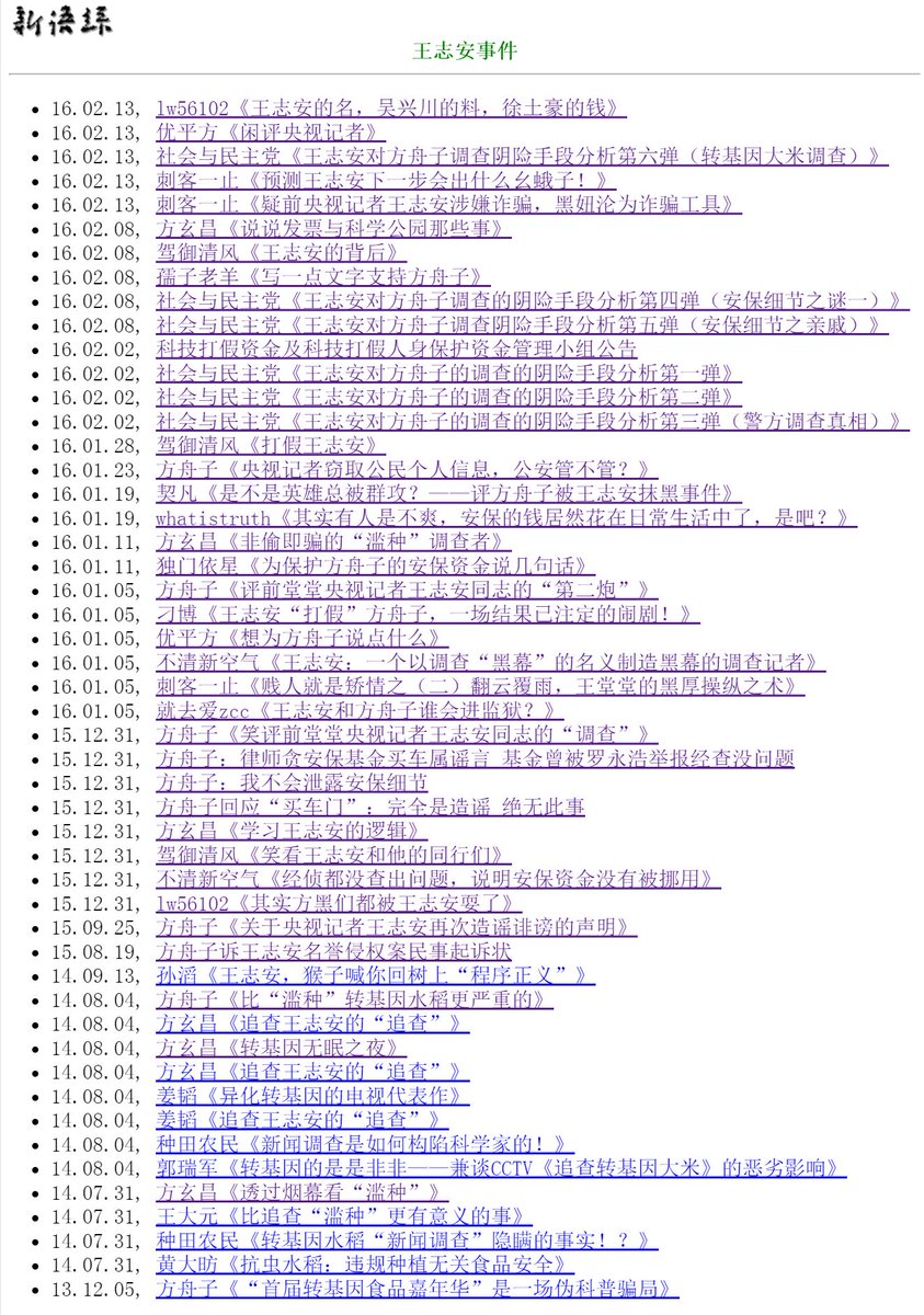 方舟子 ?@fangshimin Feb 15 “新语丝·立此存照”新设“王志安事件”专辑。https://pbs.twimg.com/media/CbTtel_UAAArRu0.jpg